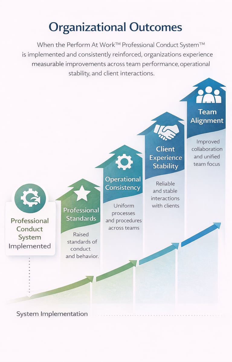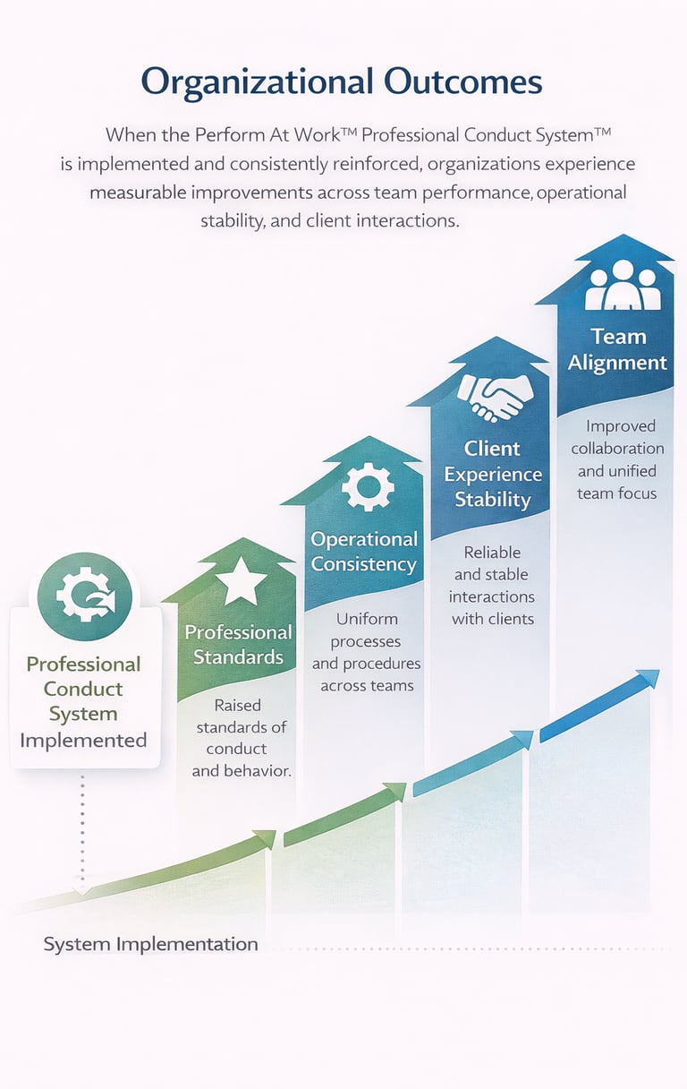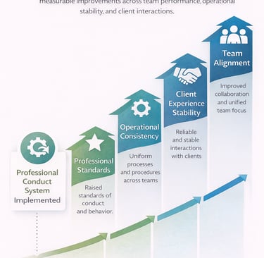 When the Professional Conduct System is implemented and consistently reinforced, organizations experience measurable improvements in professional standards, operational consistency, and client interactions.
